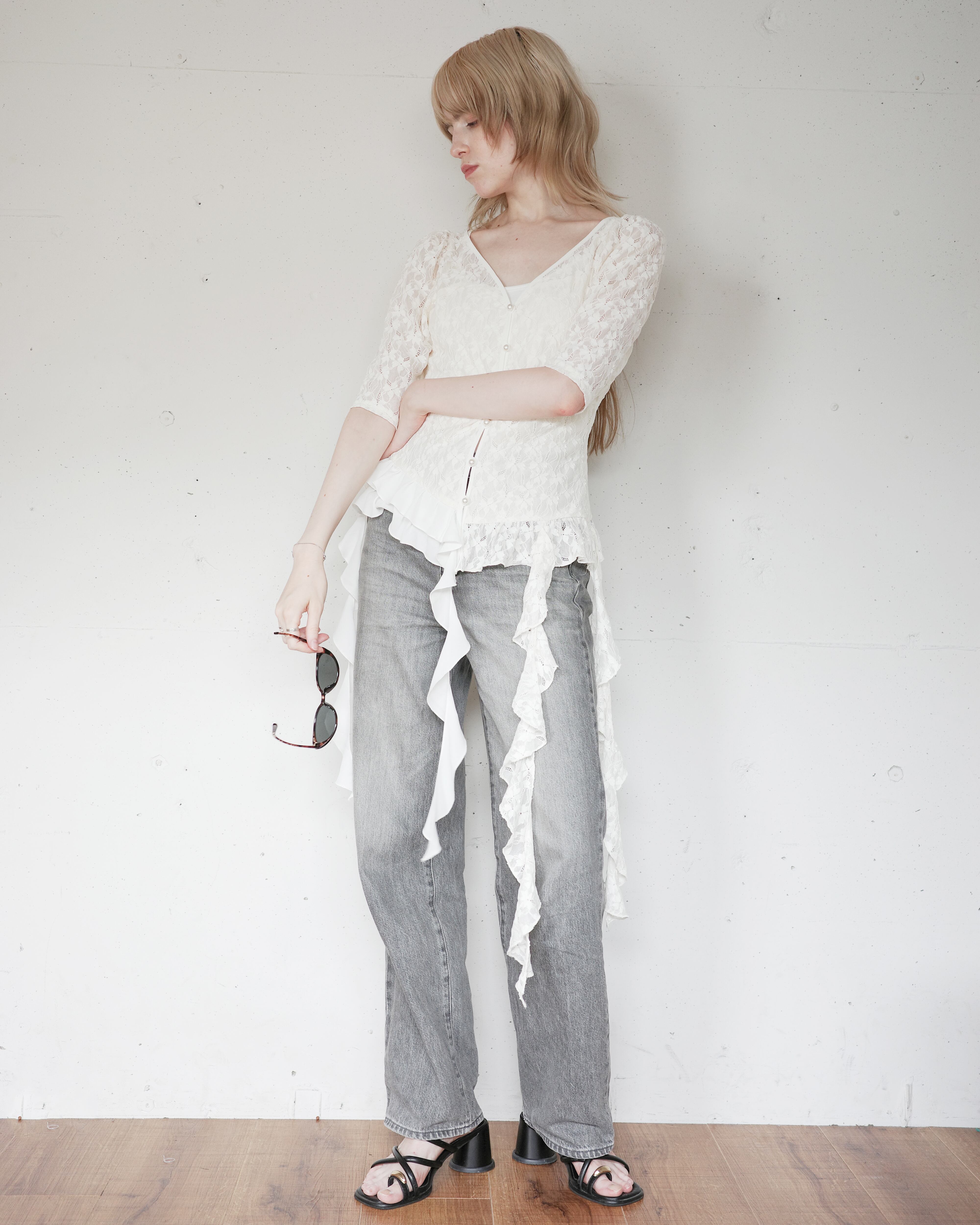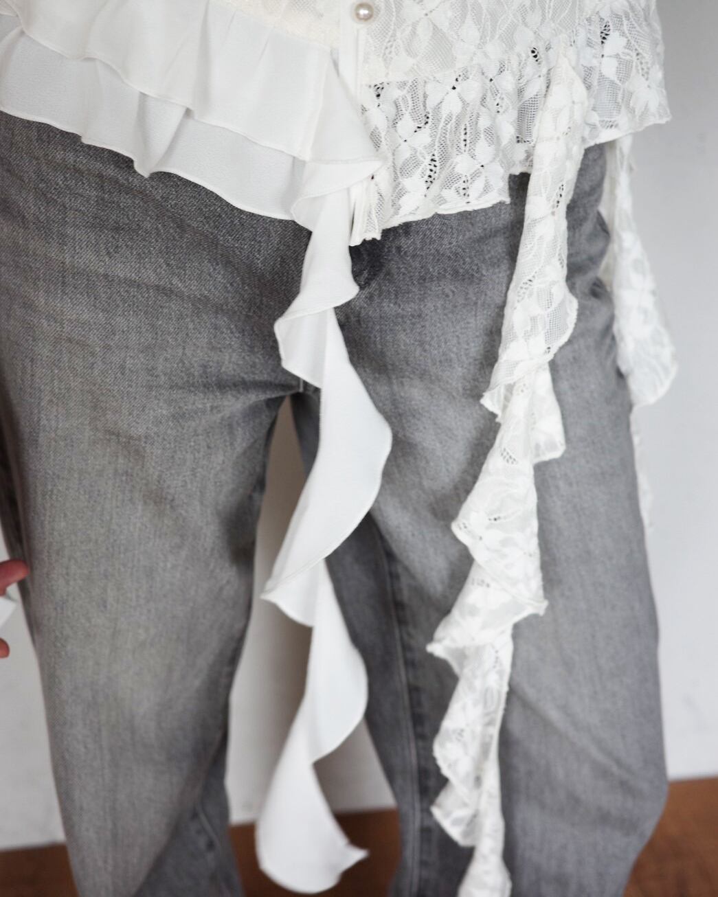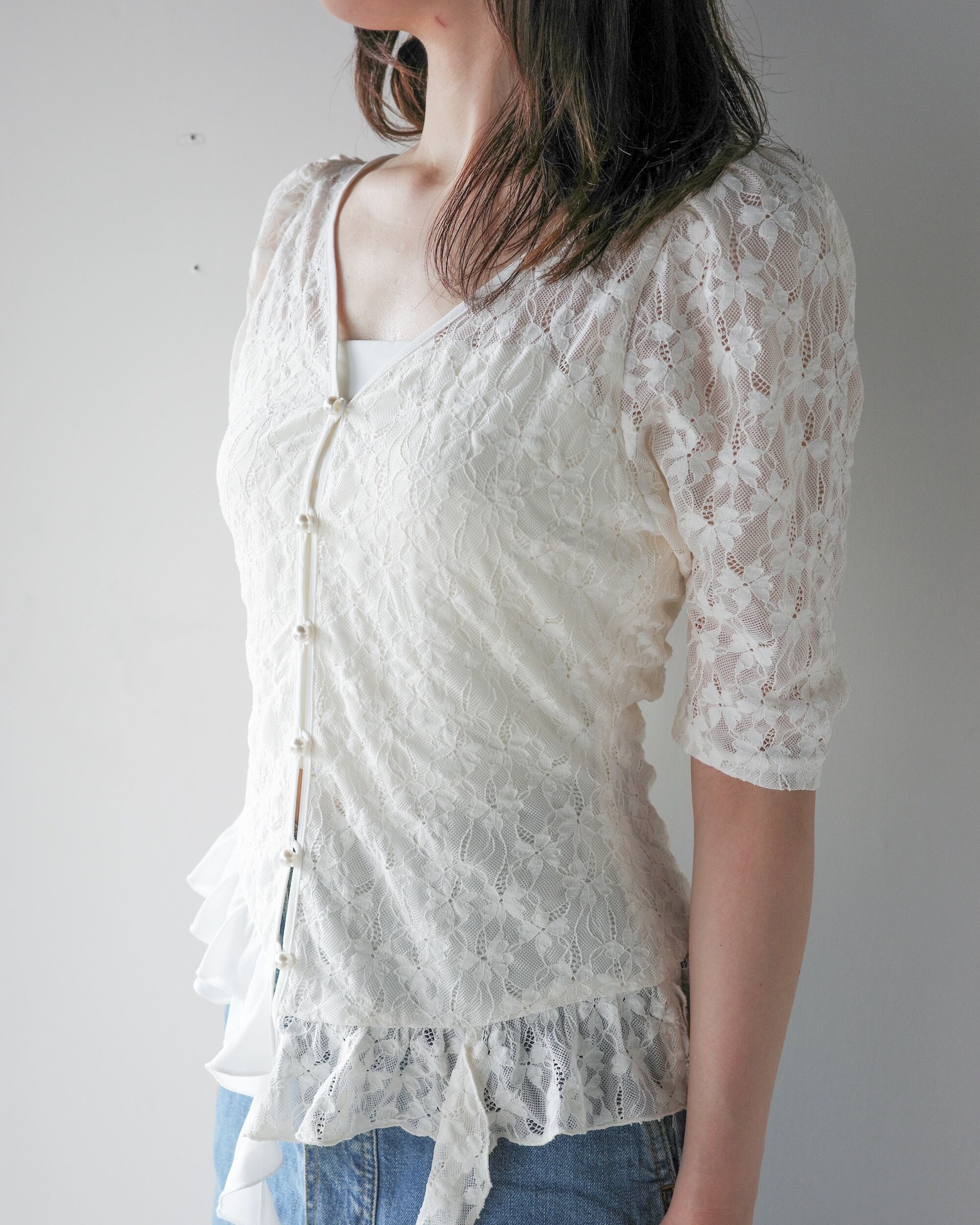 ・シフォンとレースの異素材フリルをレイヤード