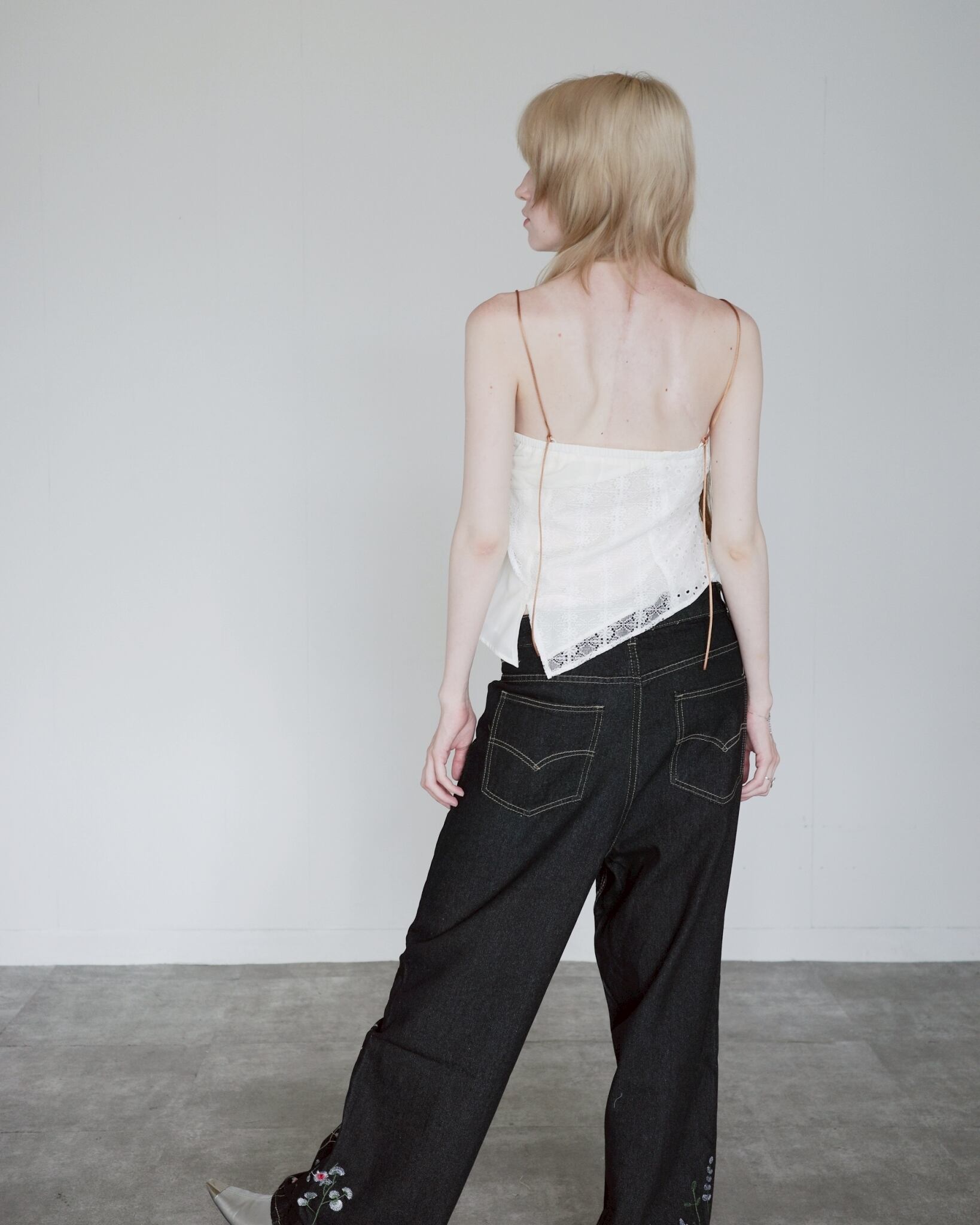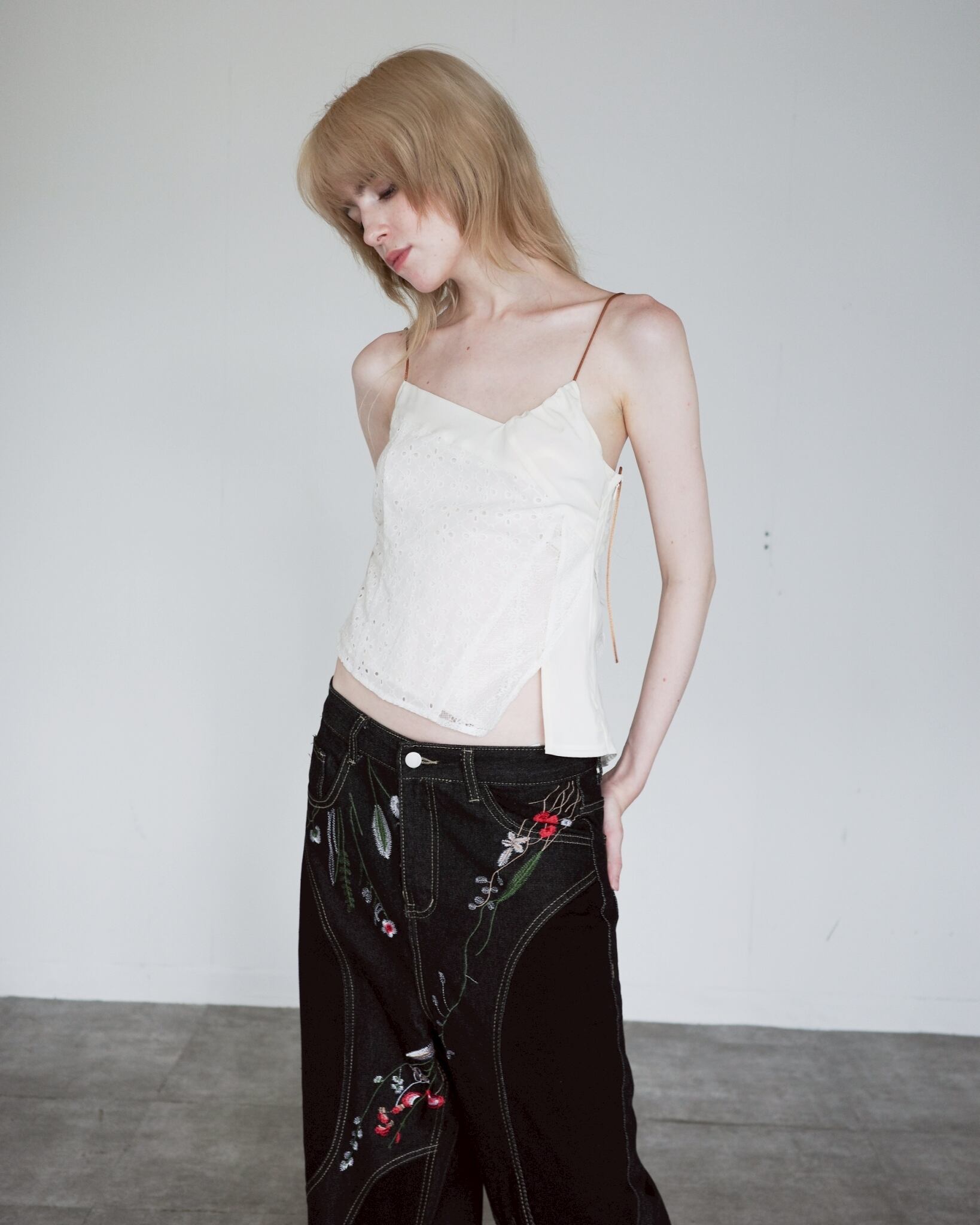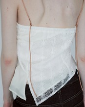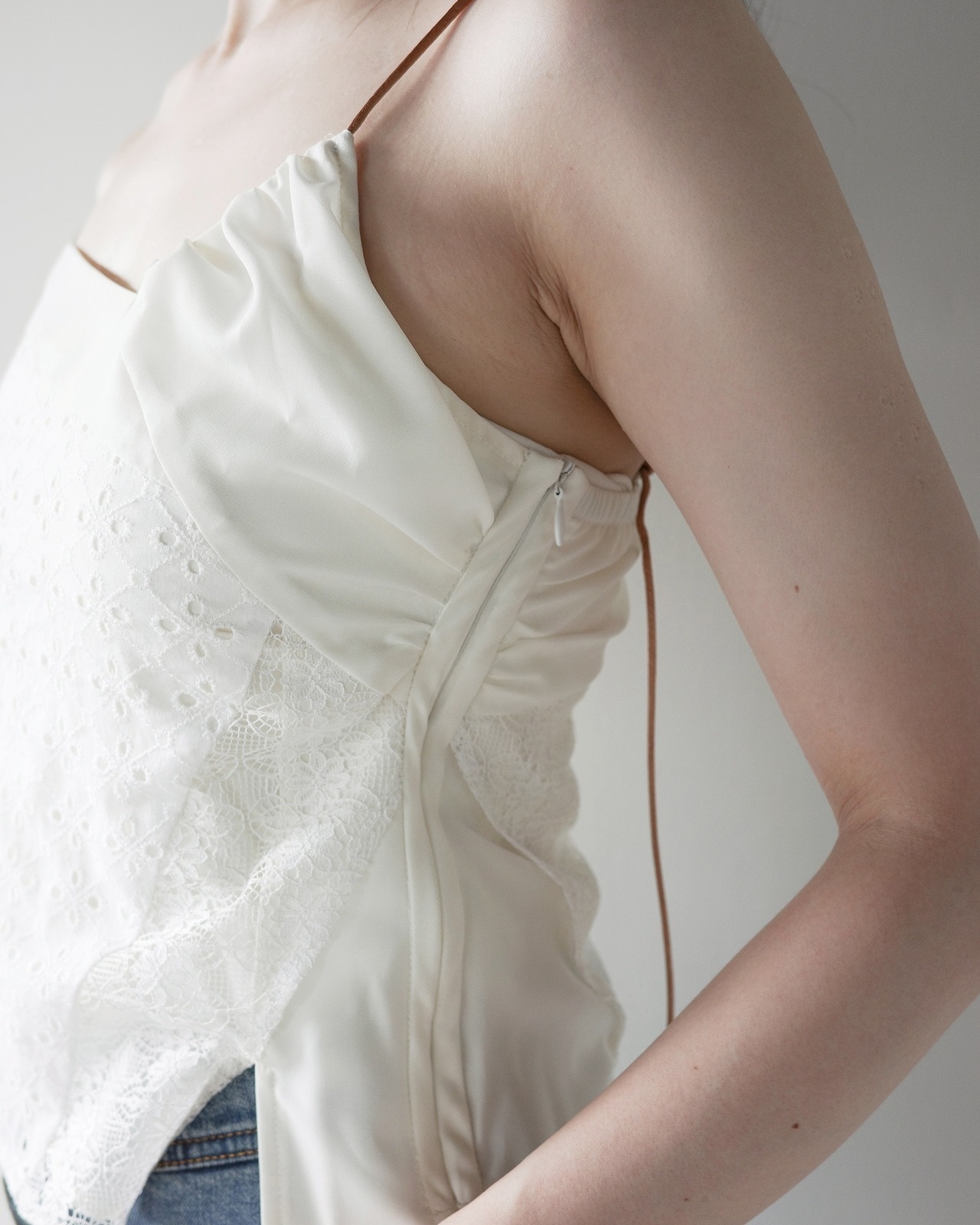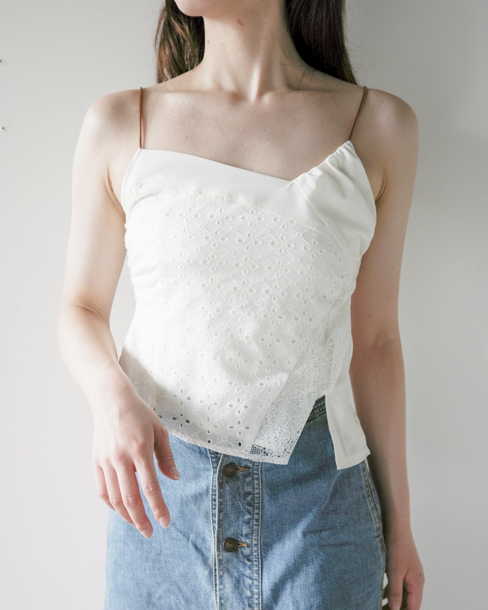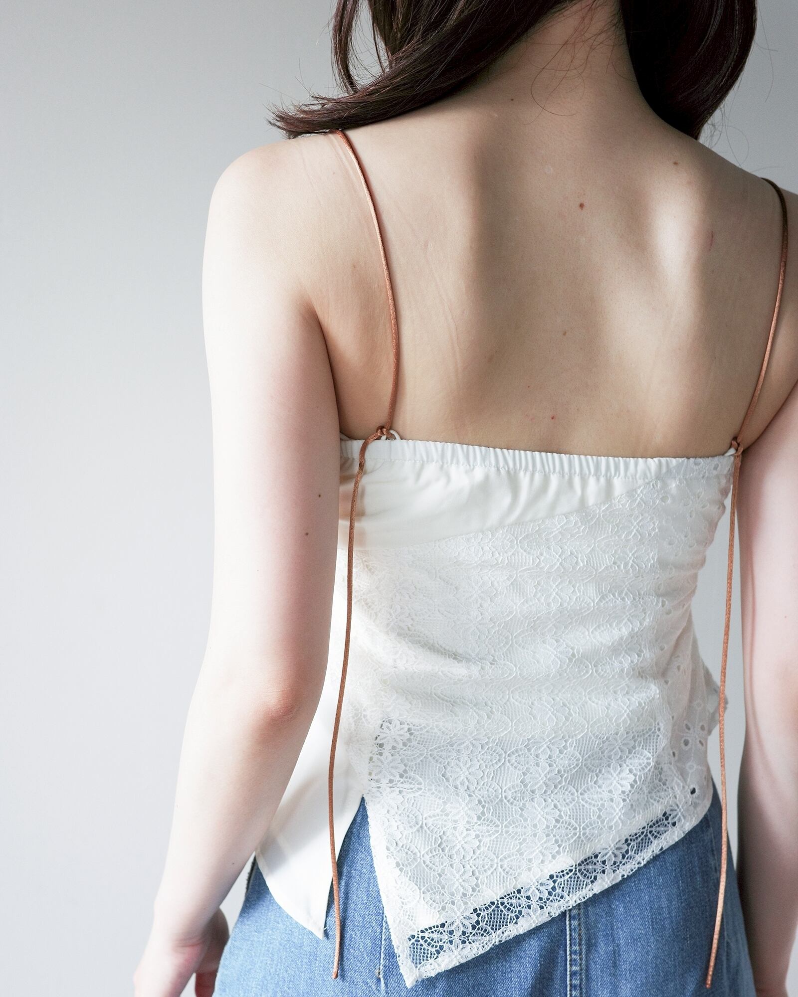 繊細なレースたちが折り重なり、静かに輪郭を描くようなキャミソール。