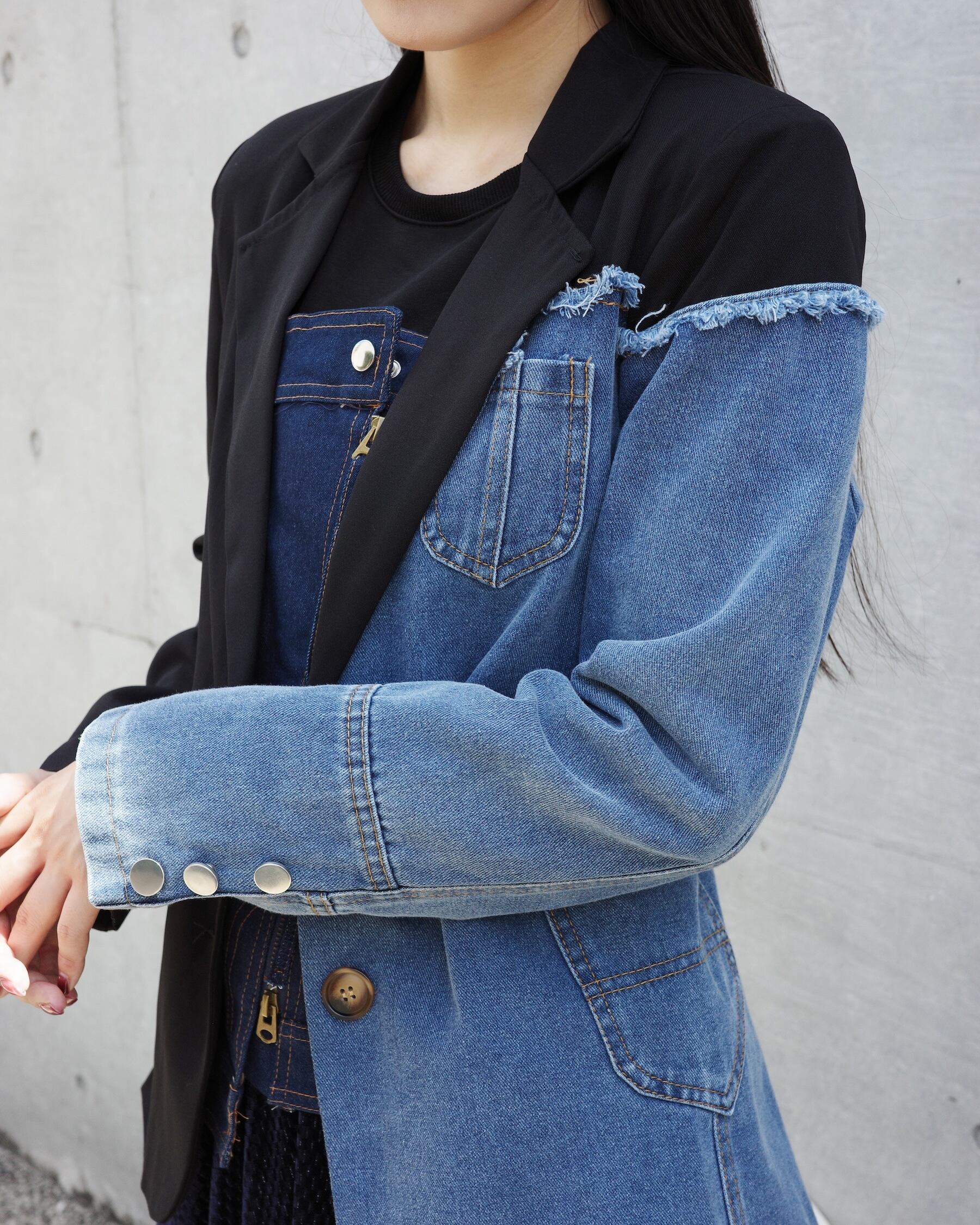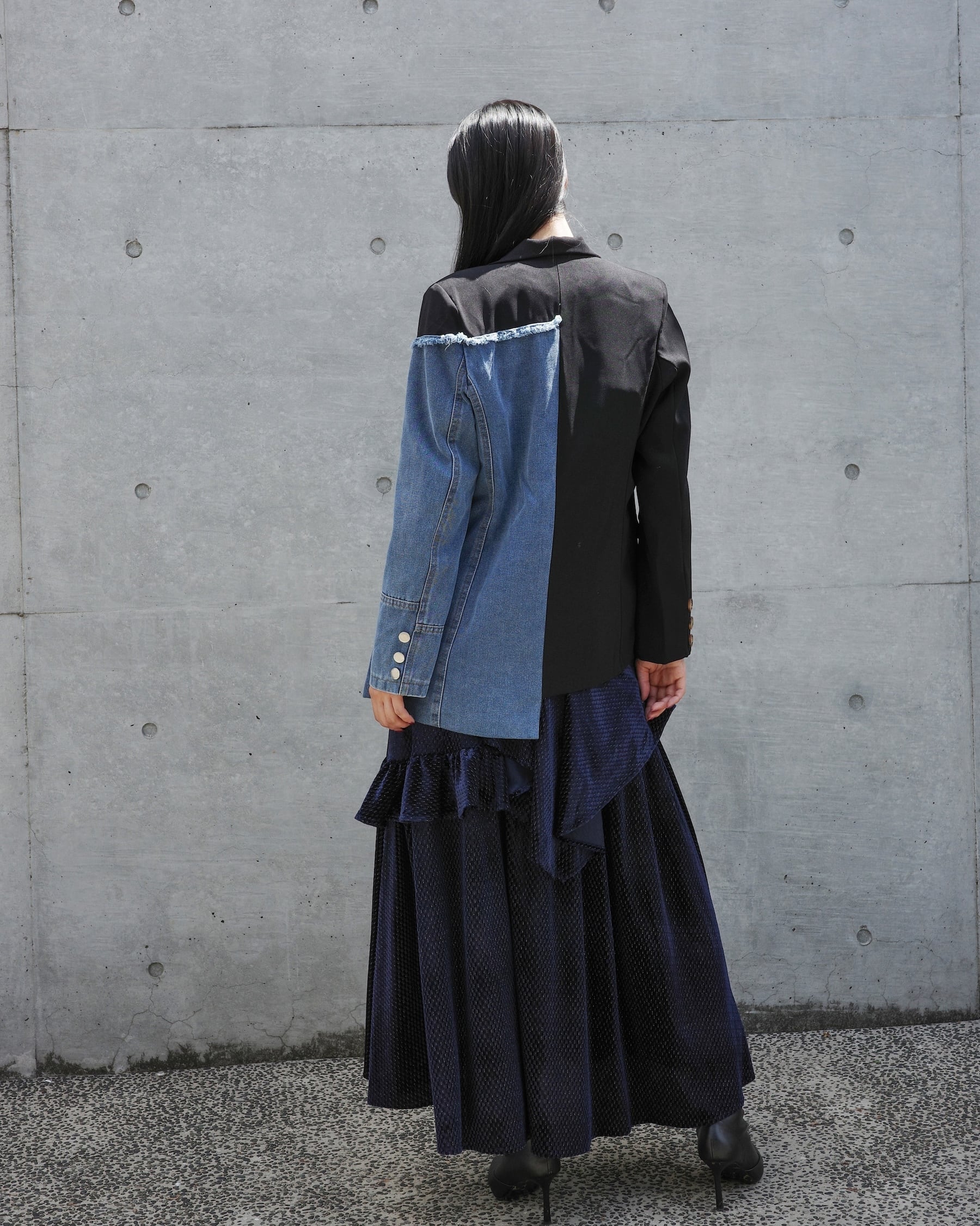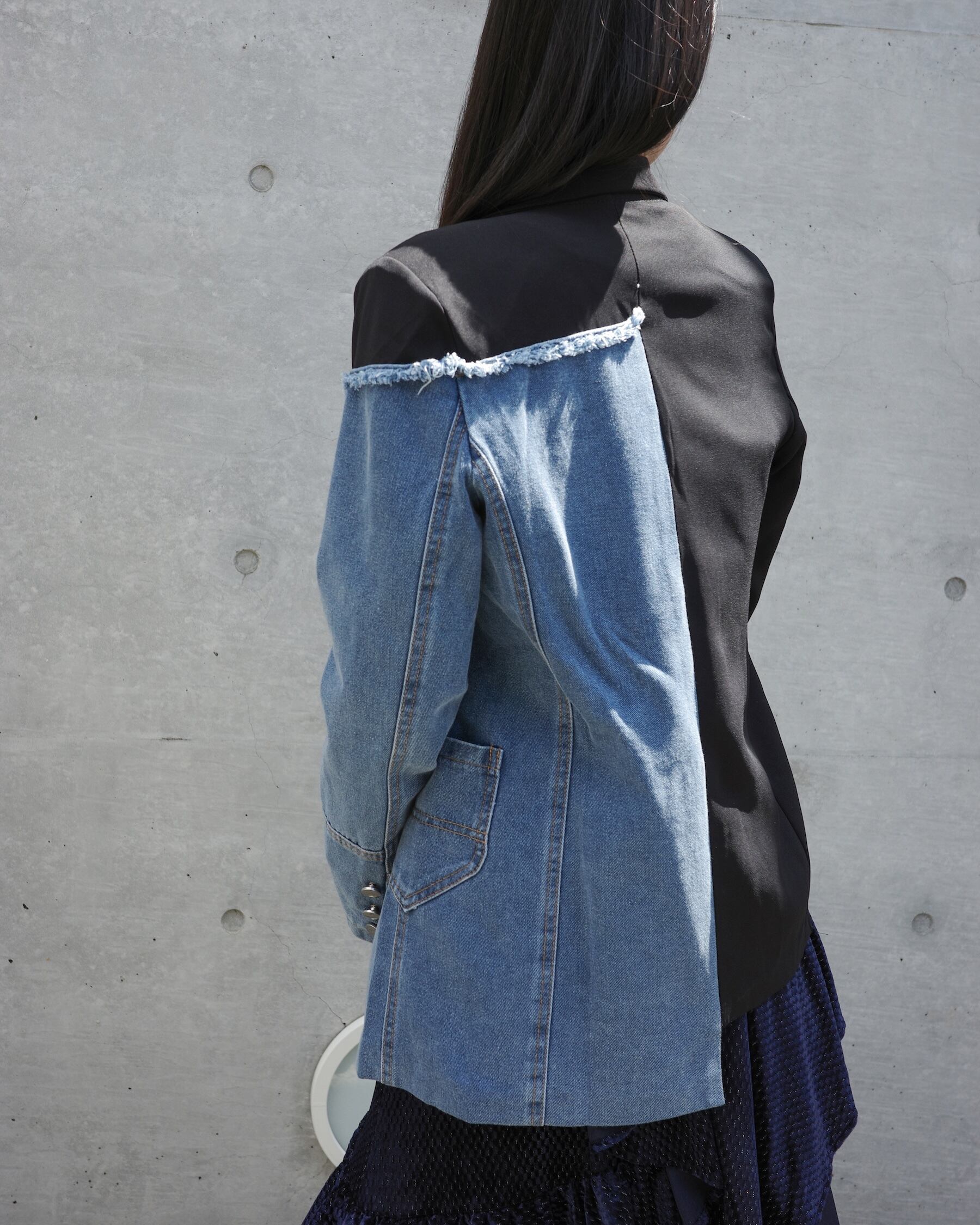 ・右側はブラックのテーラード、左側はデニムジャケットを再構築したようなディテー