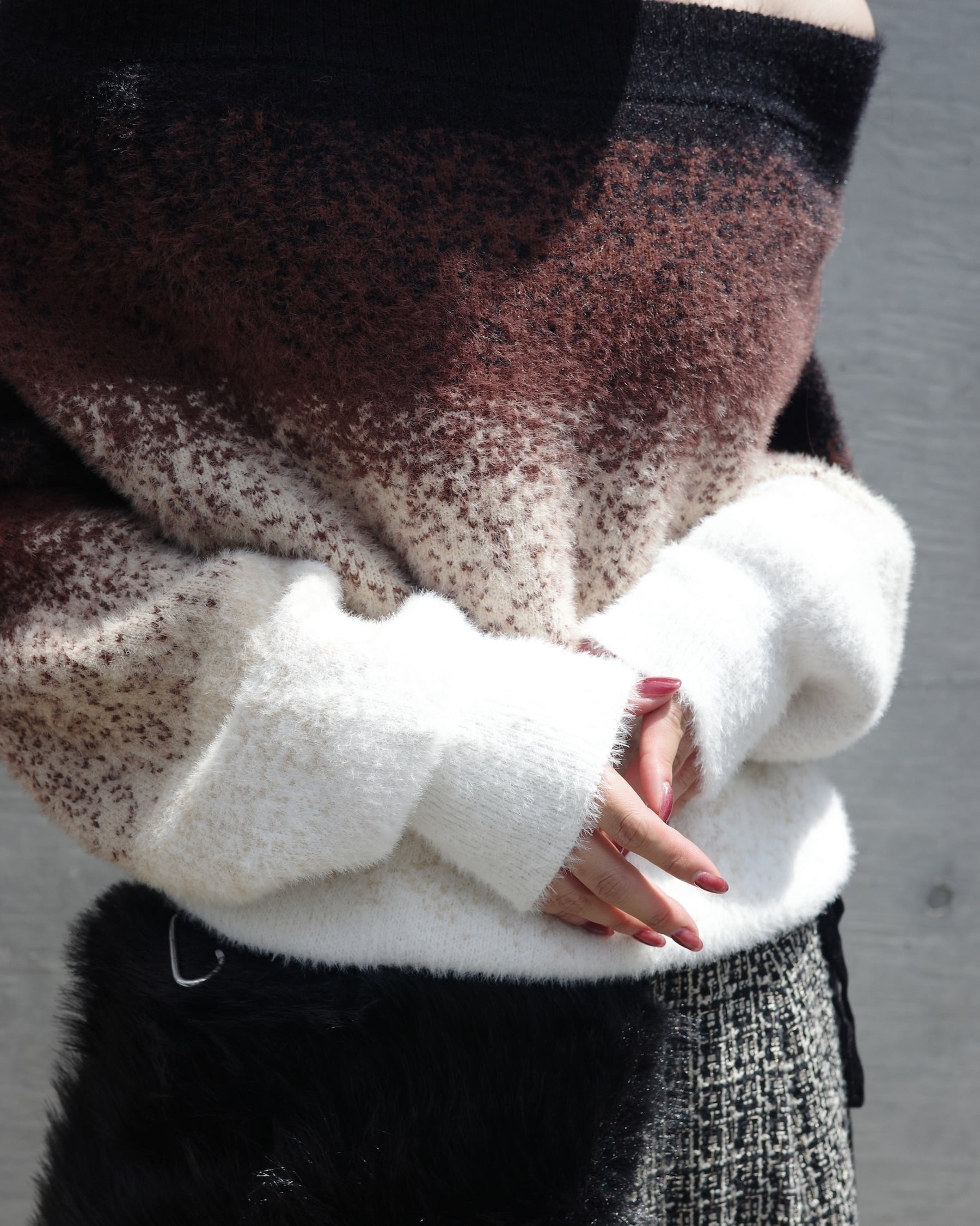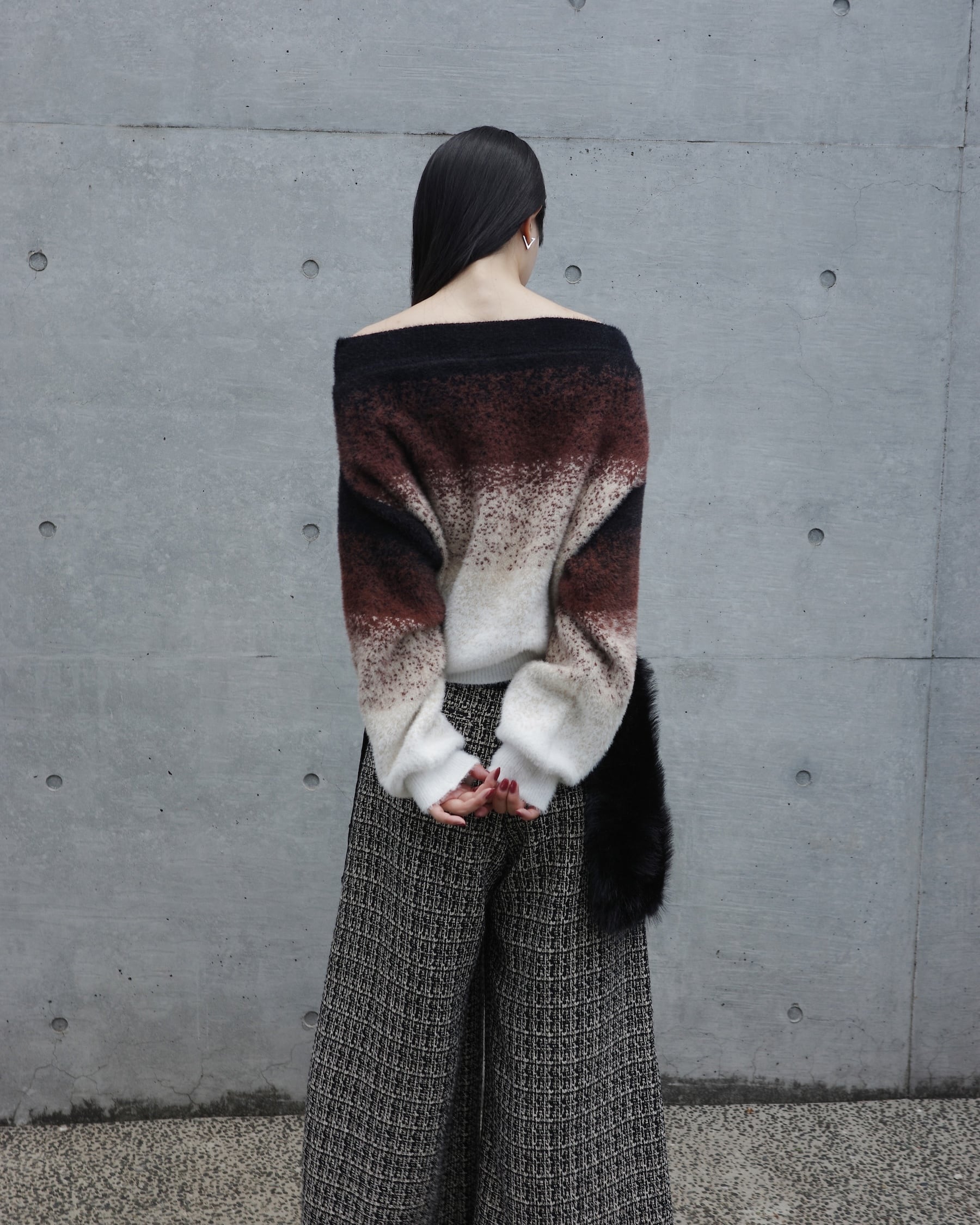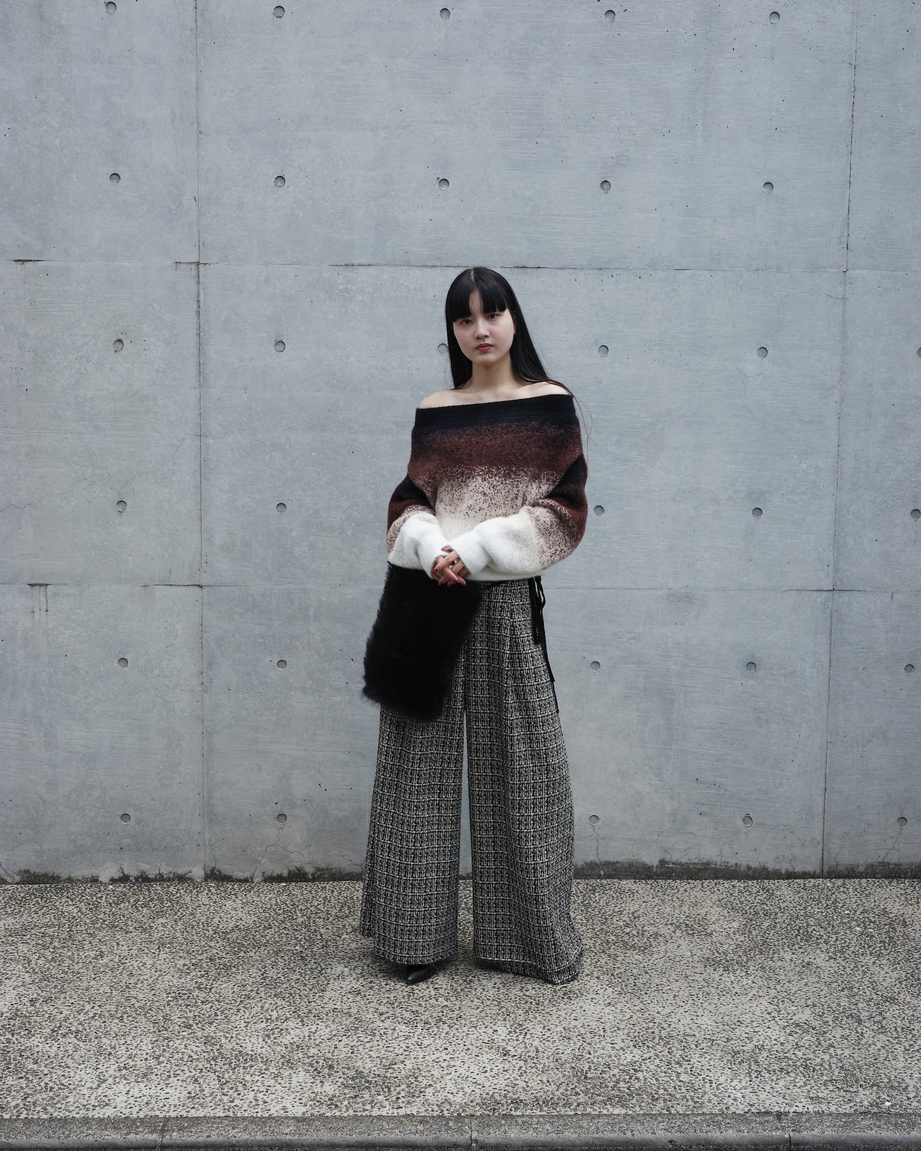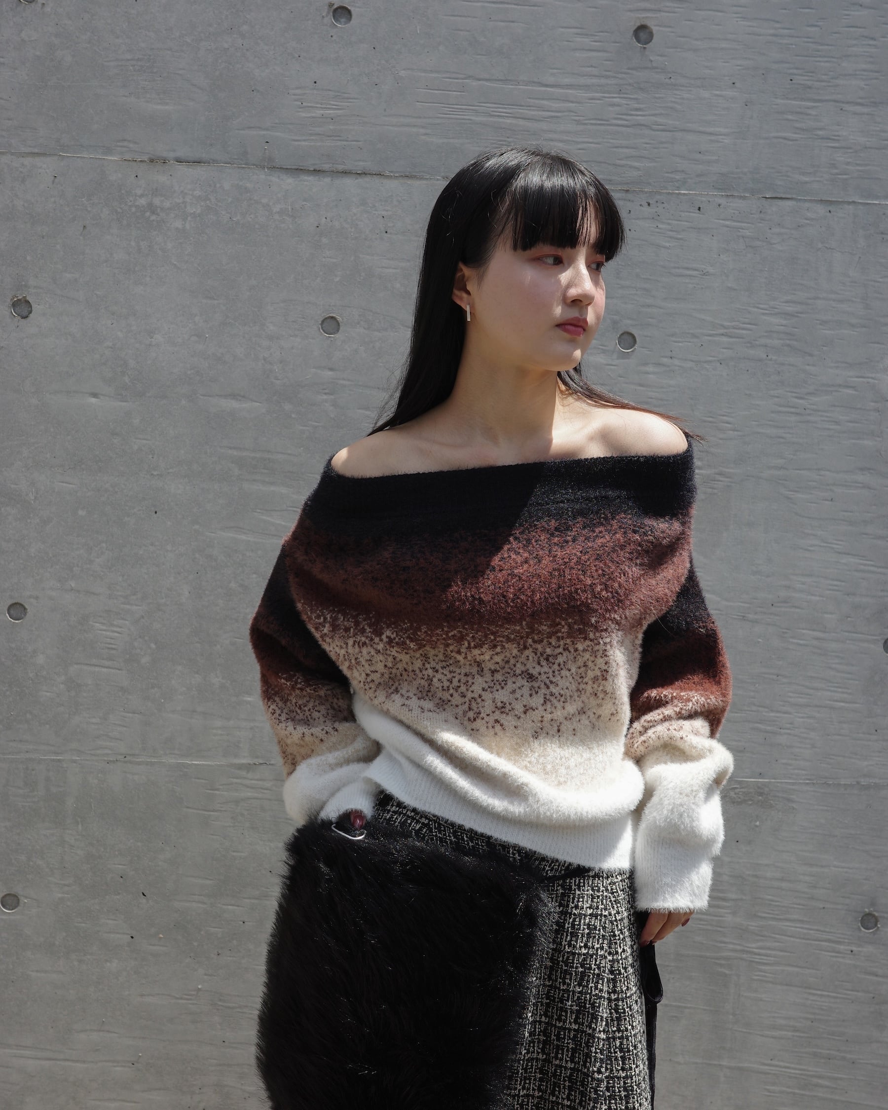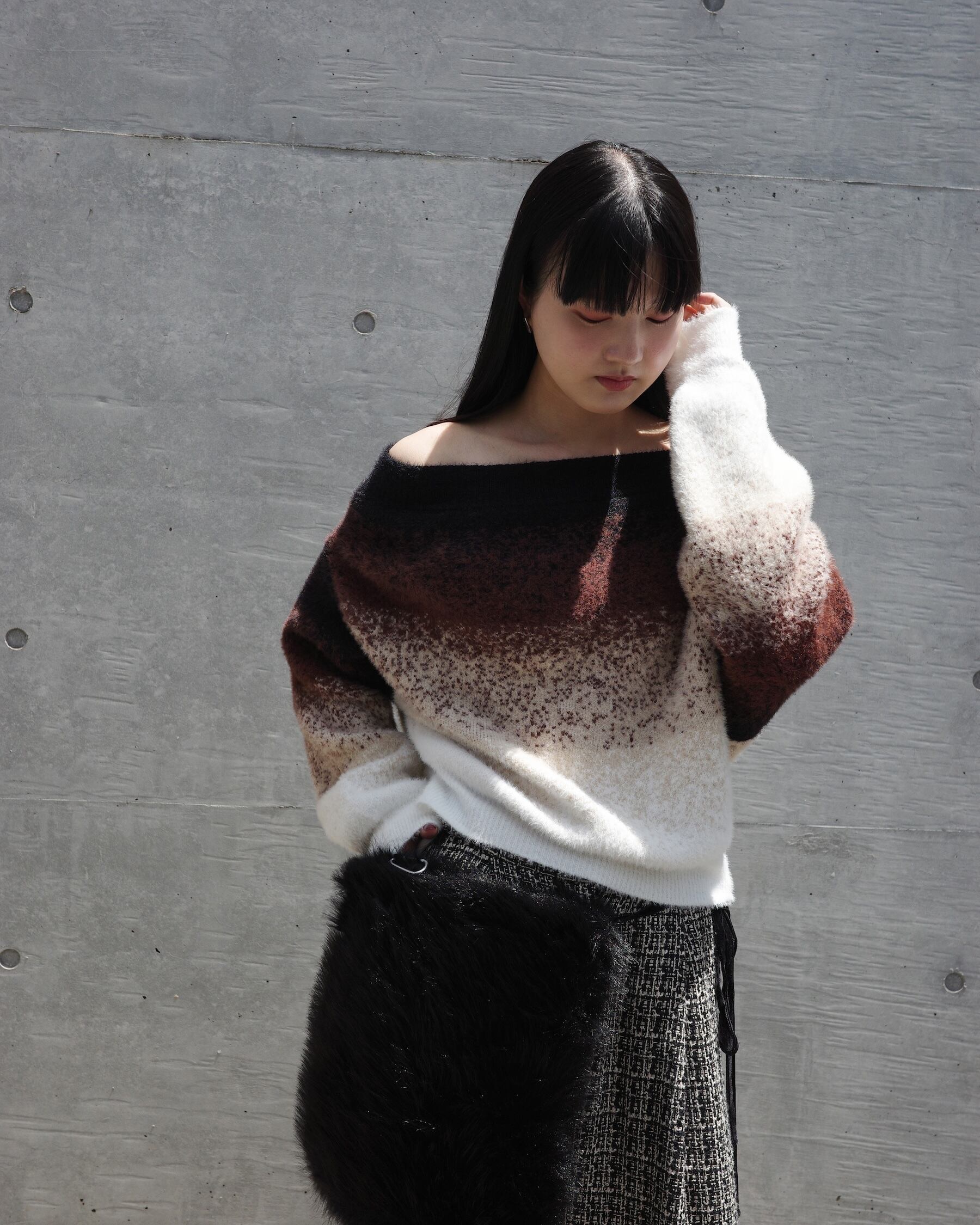 静けさの中に、さりげない色気を宿すオフショルダーのニットは、目に見えない体温や気