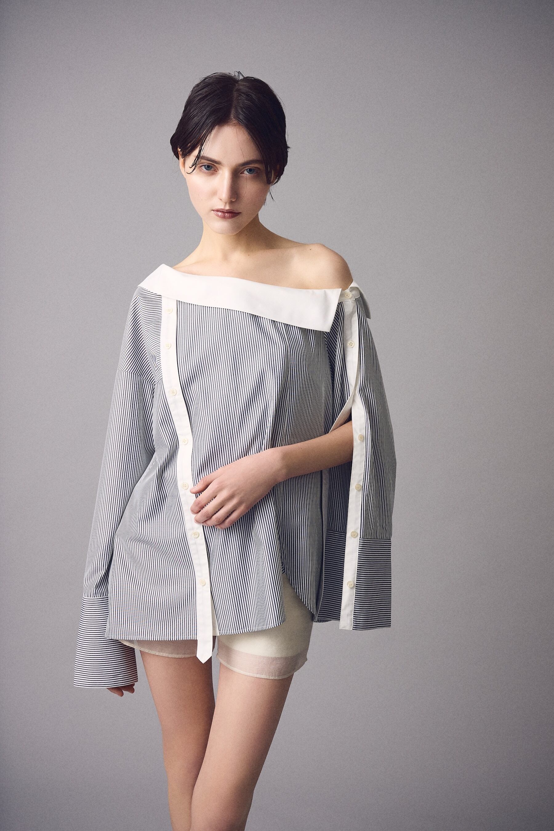 • シャツの構造を再編集したワンショルダーライン